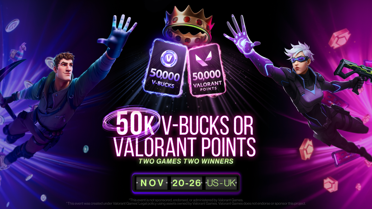 You can enter both challenges if you’re feeling ambitious. They’re separate prize pools, so smashing Fortnite doesn’t disqualify you from the Valorant side. Though good luck finding the time to grind both properly in a week.